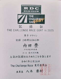 60歳で尚、自己記録更新を続け、体年齢は30歳代後半を維持。 60歳でフルマラソンのサブ3(3時間切)を達成。これは男性全年齢フルマラソン完走者の中で60歳以上では0.03%しかいない難関記録(2024年)。